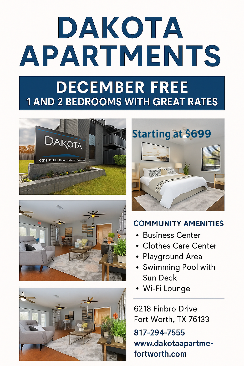 Dakota is convenient to everything Fort Worth has to offer. And, we're close to Six Flags Over Texas, Hurricane Harbor water park, AT&T Stadium (home to the Dallas Cowboys!), several golf courses, and DFW airport. - Welcome to Dakota.
