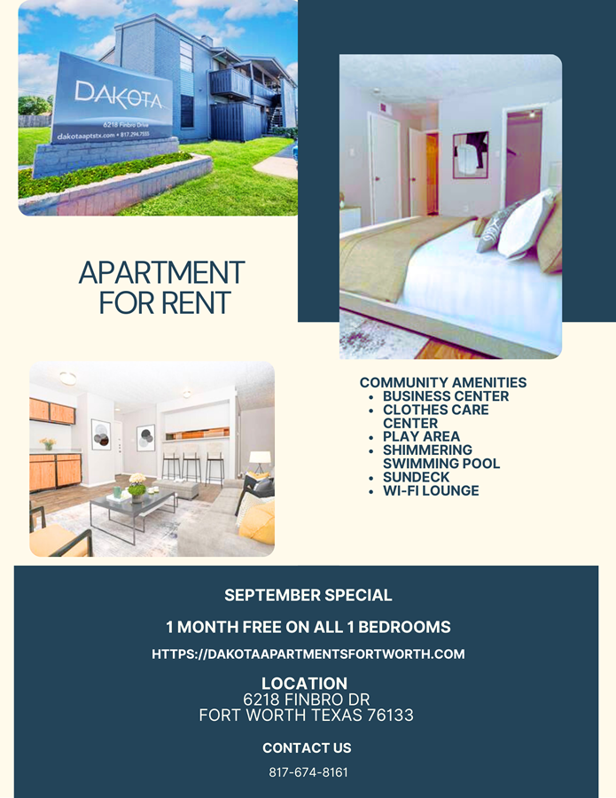 Dakota has quick access to Highways, we're just South of I-20, off of McCart Drive. We are minutes from retail, and dining. And, we're only a short drive from Sundance Square and all the excitement of Downtown Fort Worth.
